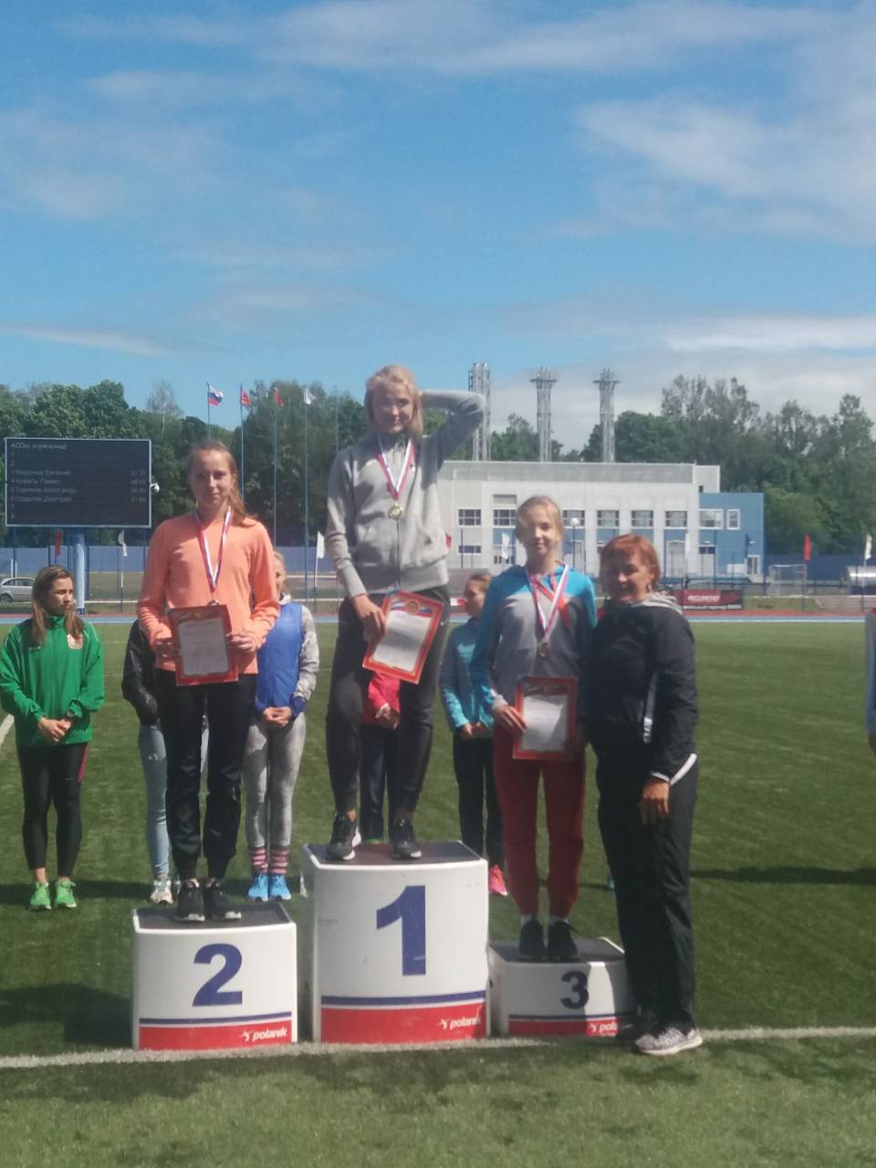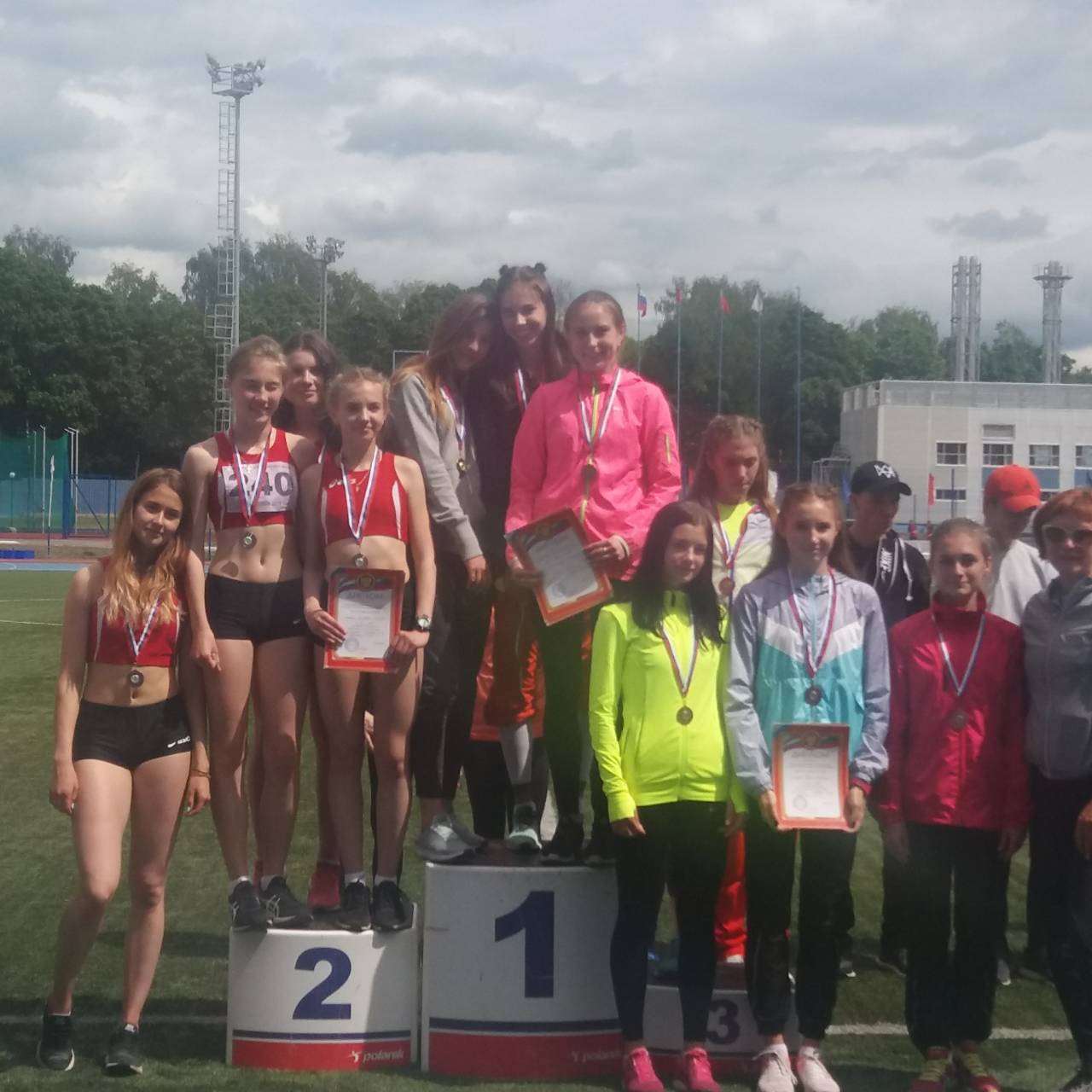 16 медалей с первенства Центрального федерального округа по легкой атлетике09.06.2018 С 6 по 8 июня в Смоленске прошел Чемпионат и первенство Центрального федерального округа по легкой атлетике. 17 коломенских спортсменов представляли Московскую область на данных соревнованиях.В первый же день соревнований копилка команды пополнилась 4 медалями. Зимарева Ксения стала победительницей в беге на дистанции 400м с барьерами. Головкина Татьяна завоевала серебряную медаль в беге на 400м. Криворучко Ирина совсем немного уступила победительнице первенства и заняла второе место в метании диска. Жуков Андрей завоевал бронзовую медаль в толкании ядра. На следующий день Жуков Андрей также стал бронзовым призером в метании диска, а Головкина Татьяна в беге на 800м финишировала второй. Андрейченко Никита принес команде золотую медаль на дистанции 110м с барьерами. В тройном прыжке два первых места на пьедестале заняли две сестры Скобел Александра и Скобел Марина. Александра с личным рекордом поднялась на высшую ступень, Марина завоевала серебро. В заключительный день соревнований прошли забеги на 2000м с препятствиями, эстафеты. В составе областных эстафетных команд коломенские спортсмены завоевали две золотых медали (Головкина Татьяна, Лычагин Илья - 4х400м), одну серебряную (Скобел Марина и Князева Екатерина - 4х100м) и одну бронзовую медаль (Шкребко Денис и Мирошник Михаил в эстафете 4х400м). Денис Руднев Павел показал третий результат на дистанциях 2000м с препятствиями. Слепнева Полина в тройном прыжке и Белозерова Елена в метании диска остановились в шаге от пьедестала и заняли четвертую строчку итоговых протоколов. Впереди спортсменов ожидают первенства России по легкой атлетике в своих возрастных категориях. |