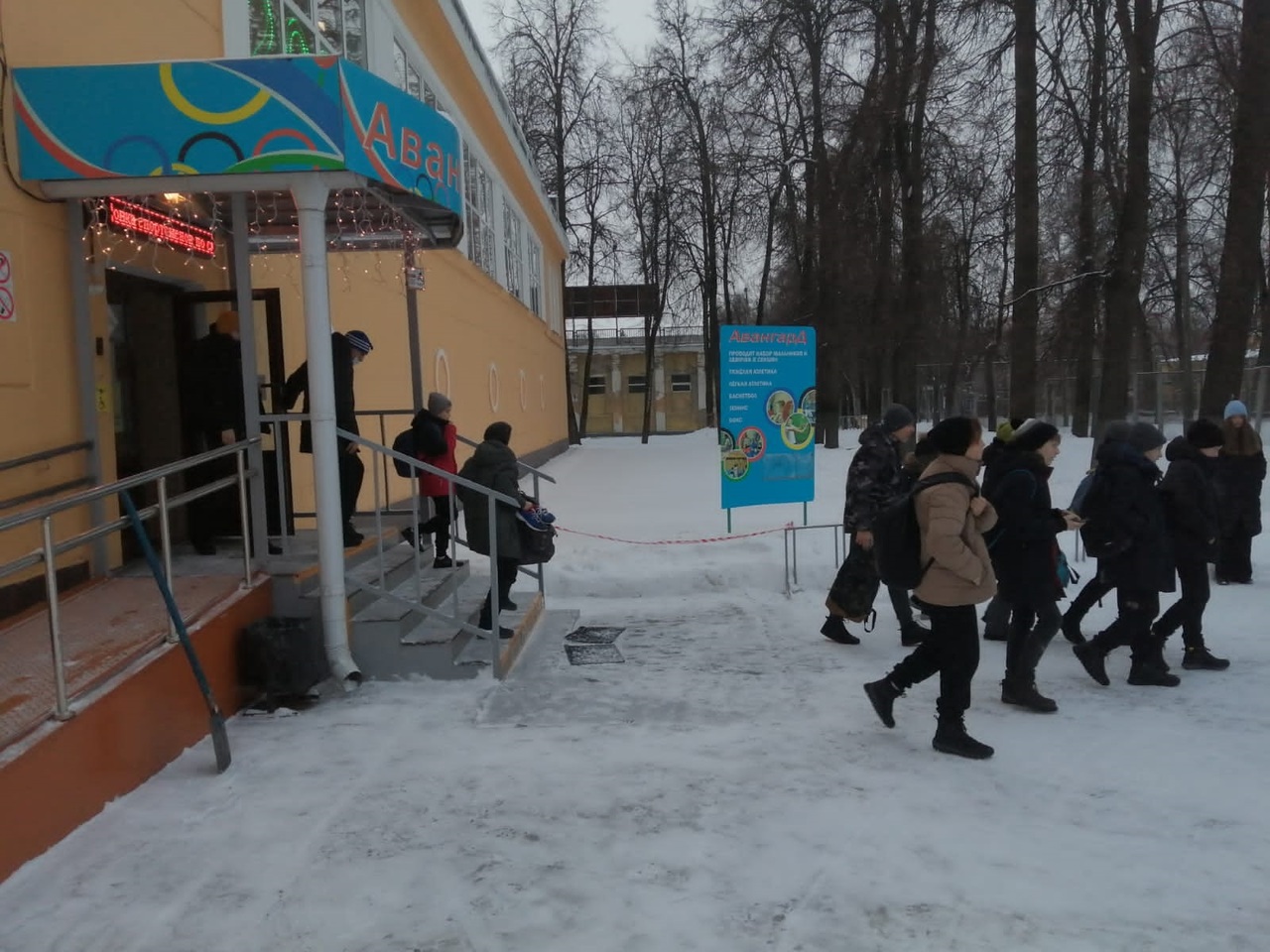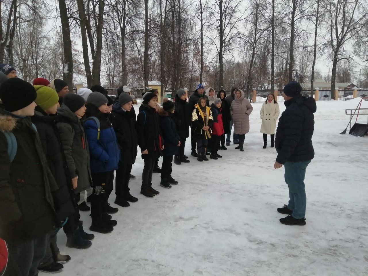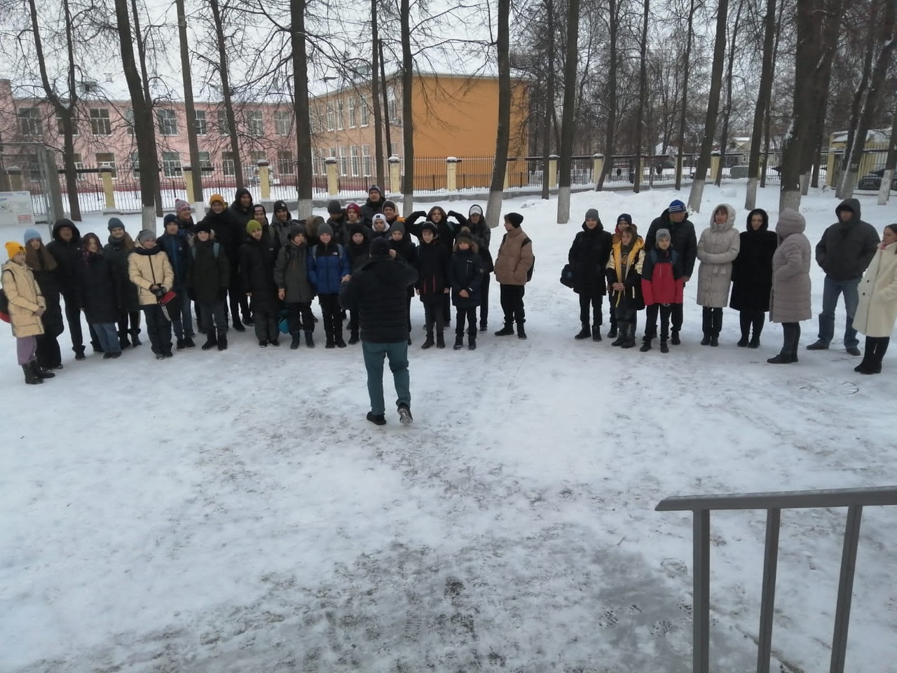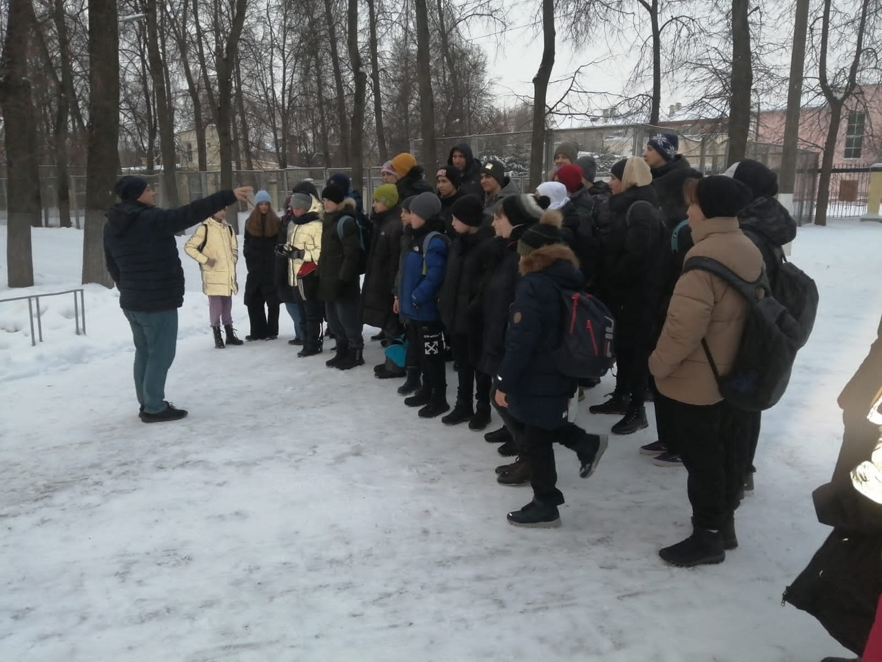 Из здания школы были эвакуированы спортсмены и сотрудники. Заместитель директора Шленков И.В. напомнил основные правила во время эвакуации, а также место эвакуации.