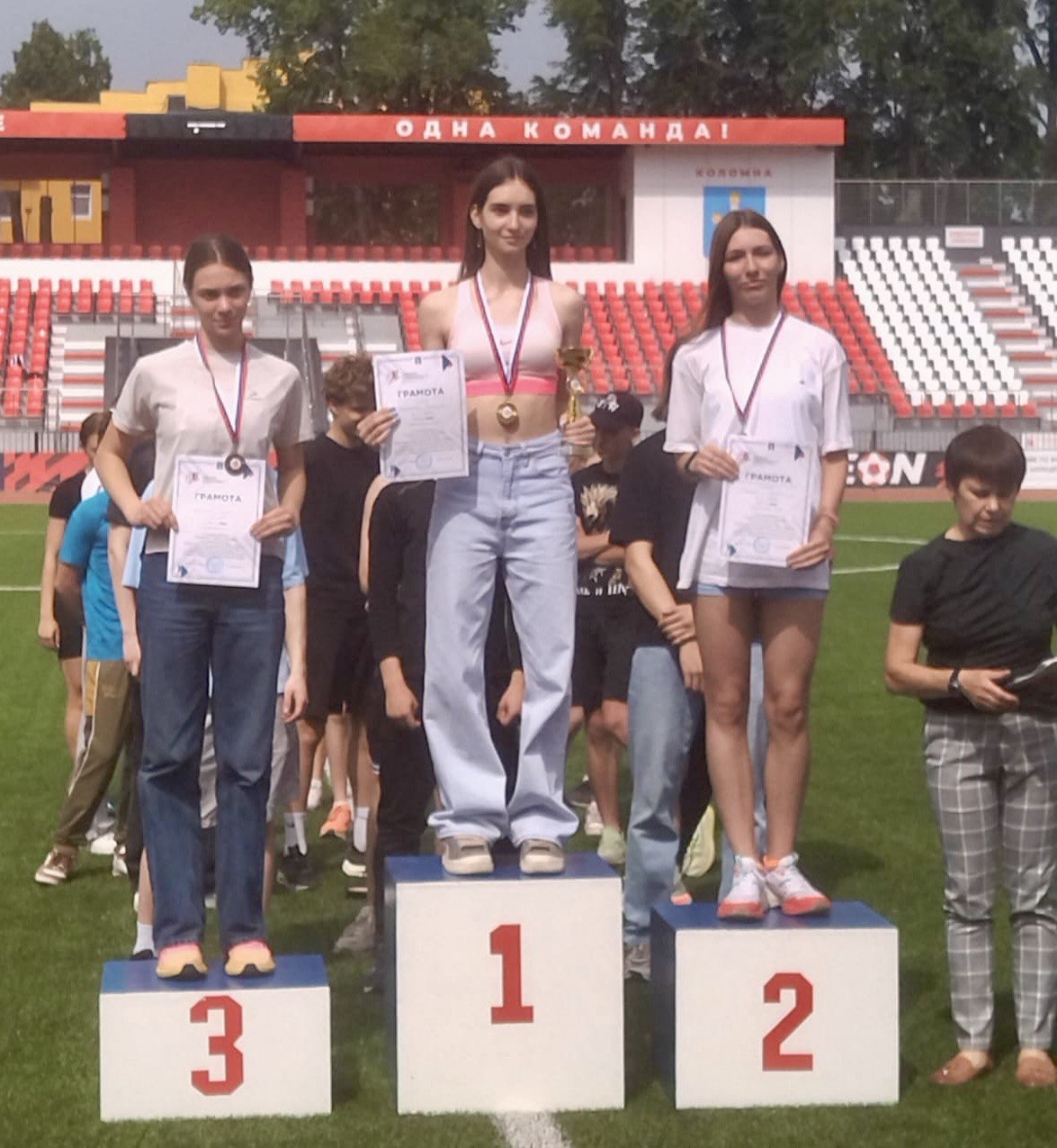 Соревнования Городского округа Коломна по легкой атлетике07.06.2025 31 мая 2025 года на стадионе «Авангард» прошли соревнования Городского округа Коломна по легкой атлетике среди юношей и девушек 2008-2009гг.р. на призы МСМК Папилиной Т.В., посвященные празднованию 80-летия Победы в Великой Отечественной войне.В соревнованиях приняли участие 200 спортсменов из Раменского, Жуковского, Белозерска, Орехово-Зуево, Дедовска, Воскресенска, Мытищ, Коломны, Луховиц, Егорьевска. Победители и призеры были награждены кубками, грамотами и медалями от Управления ФКСиМП администрации г.о. Коломны. По итогу соревнований: среди юношей: 1 место: Урюпин Михаил (прыжки в длину) 2 место: Леонов Макар (бег 1500м) 3 место: Казарян Иван (бег 800м) Среди девушек: 1 место: Смирнова Екатерина (бег 400м) 3 место: Ульянова София (бег 400м) 3 место: Митусова Анна (бег 200м) Поздравляем спортсменов и желаем им не останавливаться на достигнутом и двигаться вперед, к новым спортивным победам и достижениям! |
